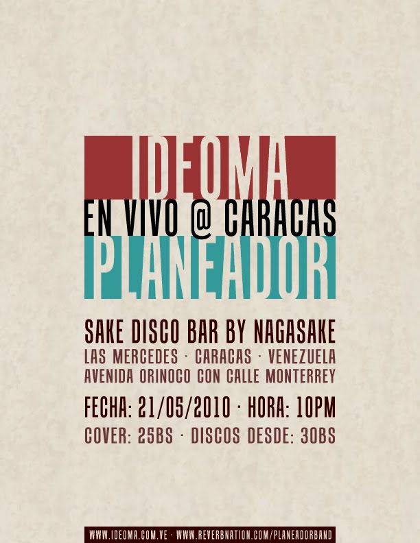 Tenemos confirmada una fecha el 14 de Diciembre en el Hard Rock Cafe Caracas donde realizaremos un concierto benéfico junto con todas las bandas que se han unido a la iniciativa. La intención del evento es recolectar la mayor cantidad de insumos para que la gente de Cultura Chacao, el Cabildo Metropolitano, Amnistía Internacional y la Cruz Roja se encarguen de hacerlos llegar a los afectados.